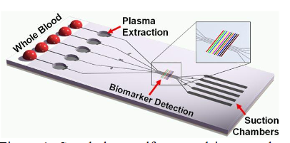 图1:独立自供电集成微流控血液分析系统(SIMBAS)[7]